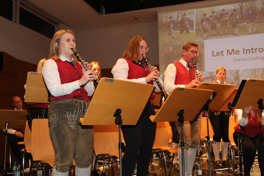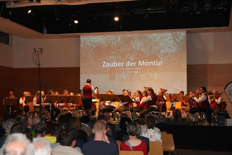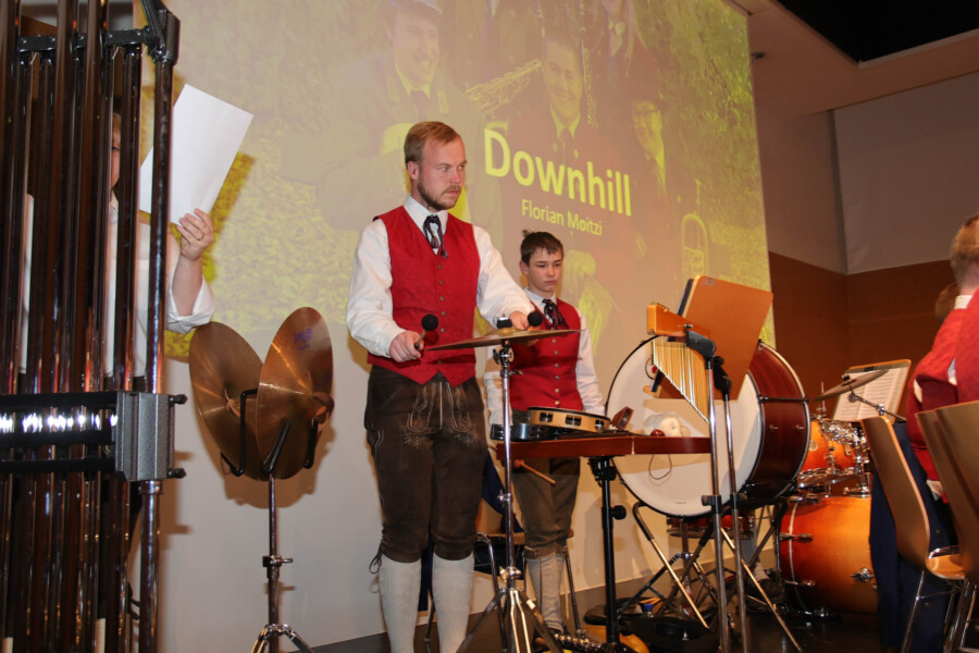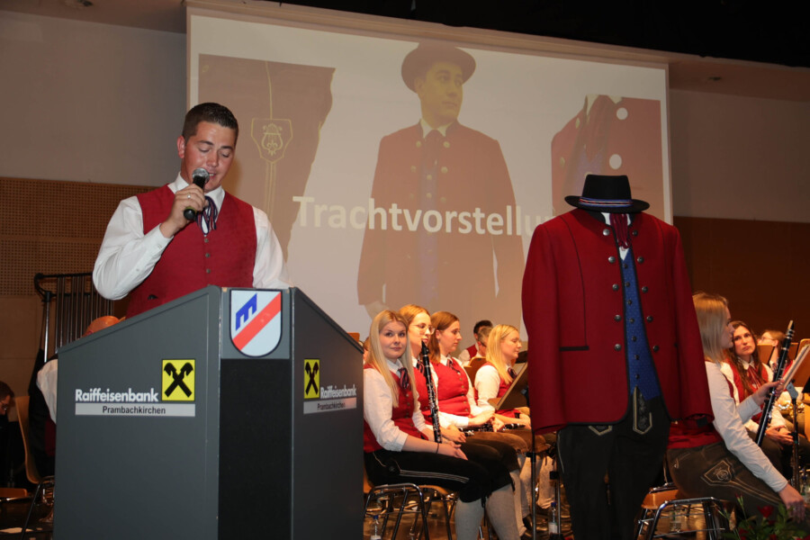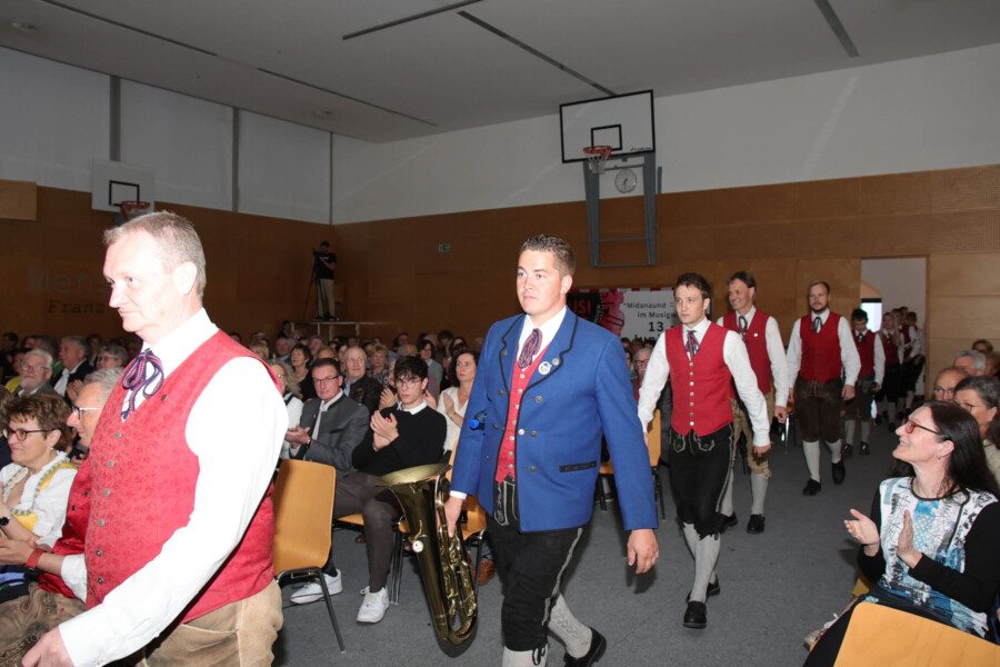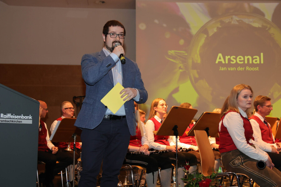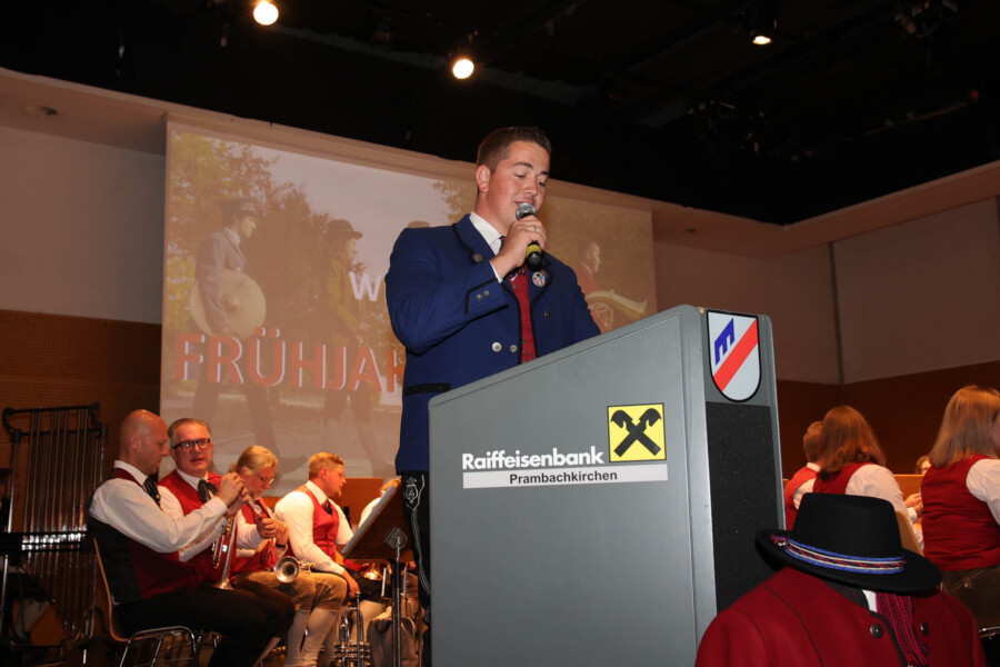 Auch heuer fand unser Frühjahrskonzert am 27.04.2024 wieder in der Mehrzweckhalle des Gymnasiums Dachsberg statt. Unser Konzert stand dabei ganz unter dem Motto „Eine neue Tracht für den Musikverein“. Humorvoll und mit genügend Witz hat uns Wolfgang Schönleitner durchs Programm geführt und dabei für den ein oder anderen Lacher gesorgt. Neben dem abwechslungsreichen und spannenden Programm, welches unser Kapellmeister Florian Lindinger für euch zusammengestellt hat, hatten wir auch die Möglichkeit unsere neu designte Tracht der Bevölkerung vorzustellen. Im Foyer des Gymnasiums Dachsbergs konnten dann auch noch die bisherigen Uniformen und Trachten des Musikvereins bestaunt werden. Eröffnet wurde unser Konzert traditionell mit einem Marsch. Dieser konnte das Publikum schon auf das schwungvolle Programm einstimmen. Ein weiteres Highlight war auch das Solostück auf der Klarinette. Hanna Reiter gab das Stück „Gabriels Oboe“ zu ihrem Besten und wurde mit kräftigem Applaus belohnt. Weiters hatte auch Florian Lindinger persönlich wieder für einen absoluten Hörgenuss gesorgt. Zum ersten Mal konnten wir ein selbst komponiertes Stück von ihm auf der Bühne zum Besten geben. Bei dem Stück „Let me Introduce…“ hatte jedes Register die Chance sein Instrument mit außergewöhnlichen Klängen vorzustellen.