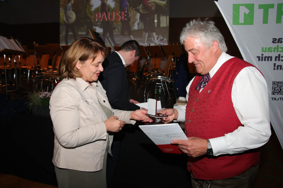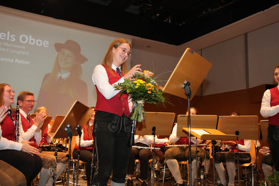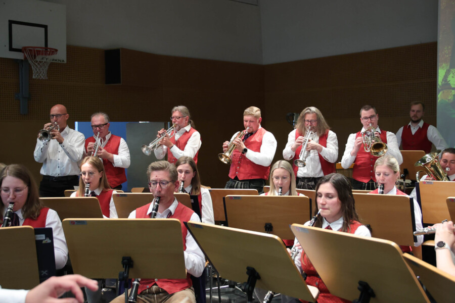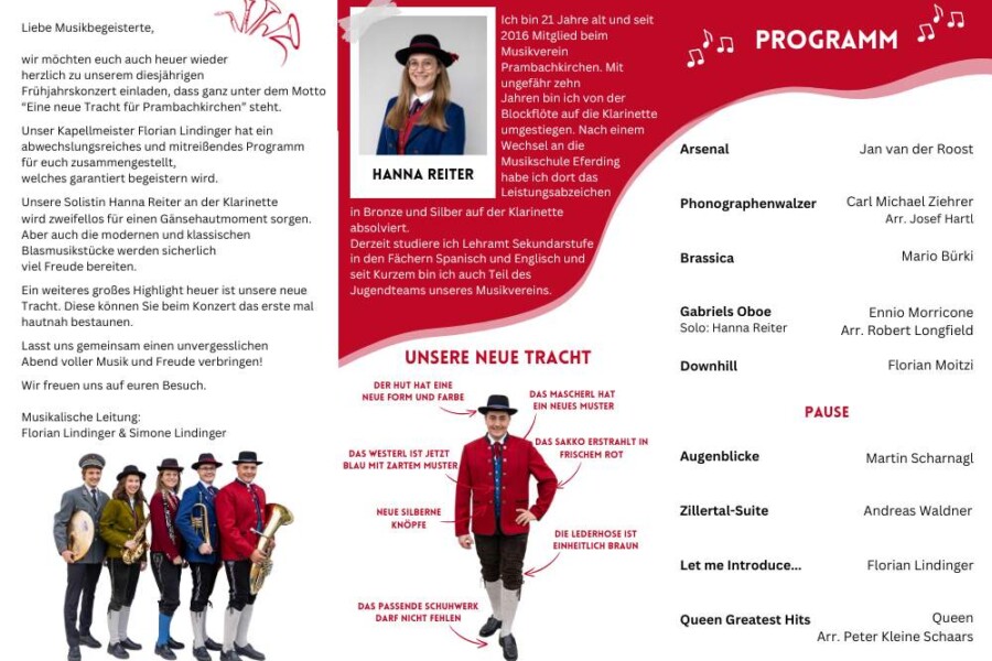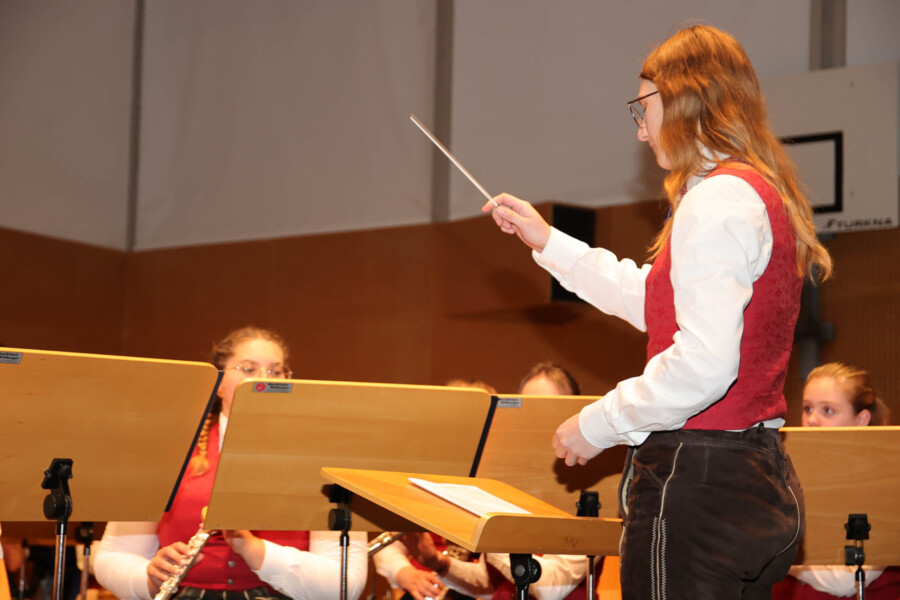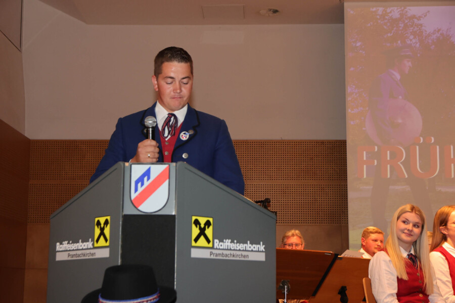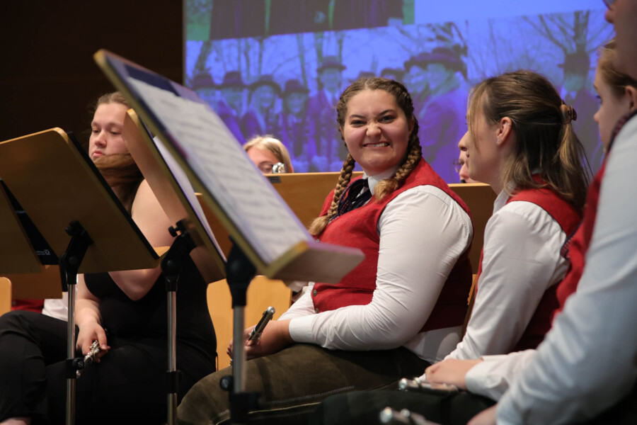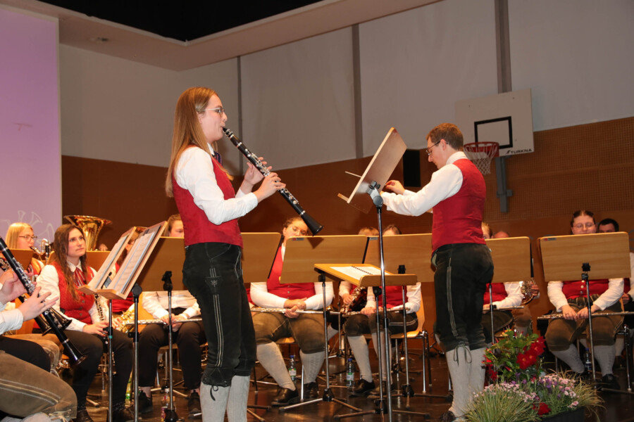 Auch heuer fand unser Frühjahrskonzert am 27.04.2024 wieder in der Mehrzweckhalle des Gymnasiums Dachsberg statt. Unser Konzert stand dabei ganz unter dem Motto „Eine neue Tracht für den Musikverein“. Humorvoll und mit genügend Witz hat uns Wolfgang Schönleitner durchs Programm geführt und dabei für den ein oder anderen Lacher gesorgt. Neben dem abwechslungsreichen und spannenden Programm, welches unser Kapellmeister Florian Lindinger für euch zusammengestellt hat, hatten wir auch die Möglichkeit unsere neu designte Tracht der Bevölkerung vorzustellen. Im Foyer des Gymnasiums Dachsbergs konnten dann auch noch die bisherigen Uniformen und Trachten des Musikvereins bestaunt werden. Eröffnet wurde unser Konzert traditionell mit einem Marsch. Dieser konnte das Publikum schon auf das schwungvolle Programm einstimmen. Ein weiteres Highlight war auch das Solostück auf der Klarinette. Hanna Reiter gab das Stück „Gabriels Oboe“ zu ihrem Besten und wurde mit kräftigem Applaus belohnt. Weiters hatte auch Florian Lindinger persönlich wieder für einen absoluten Hörgenuss gesorgt. Zum ersten Mal konnten wir ein selbst komponiertes Stück von ihm auf der Bühne zum Besten geben. Bei dem Stück „Let me Introduce…“ hatte jedes Register die Chance sein Instrument mit außergewöhnlichen Klängen vorzustellen.