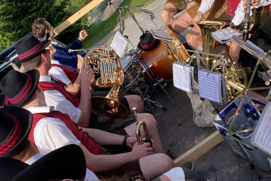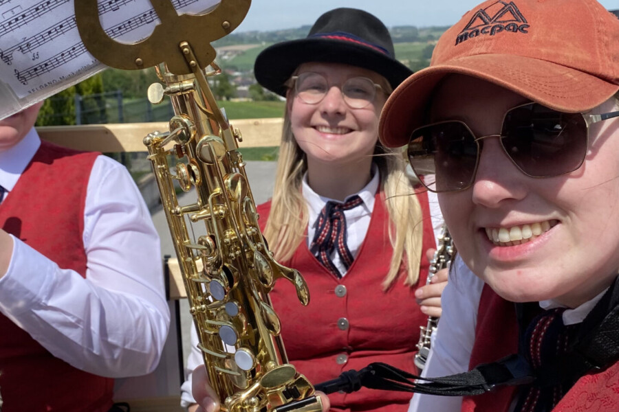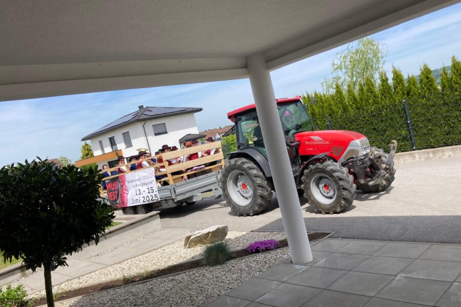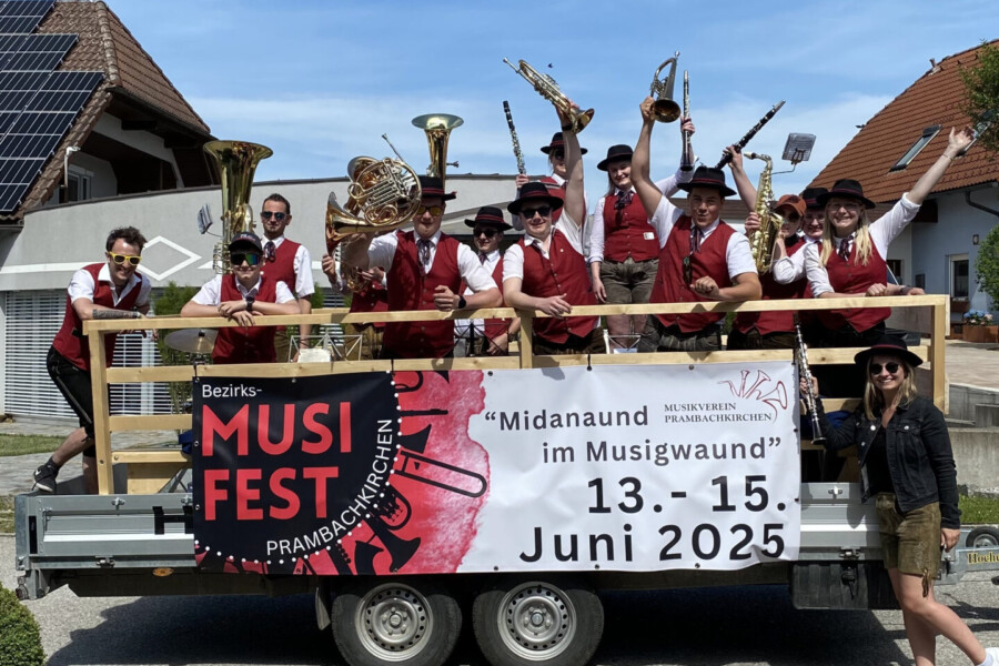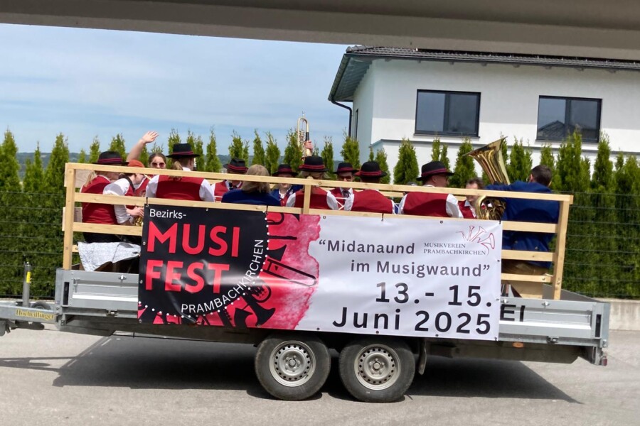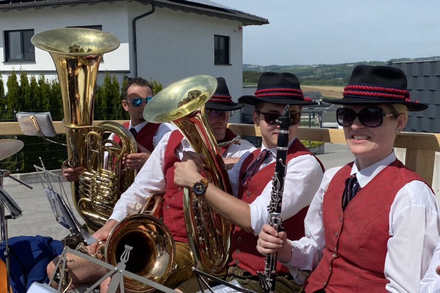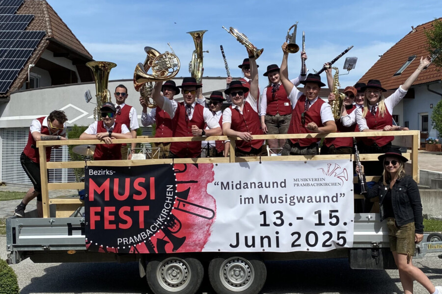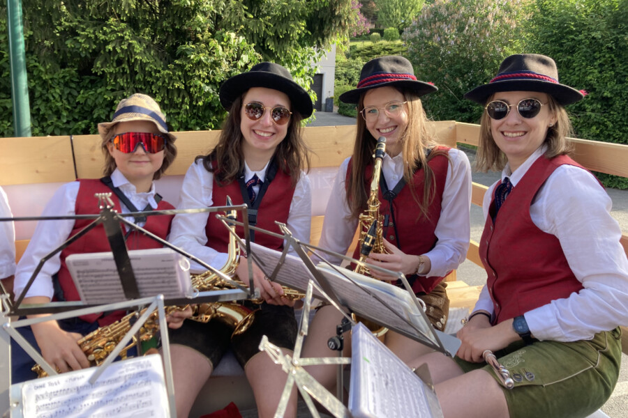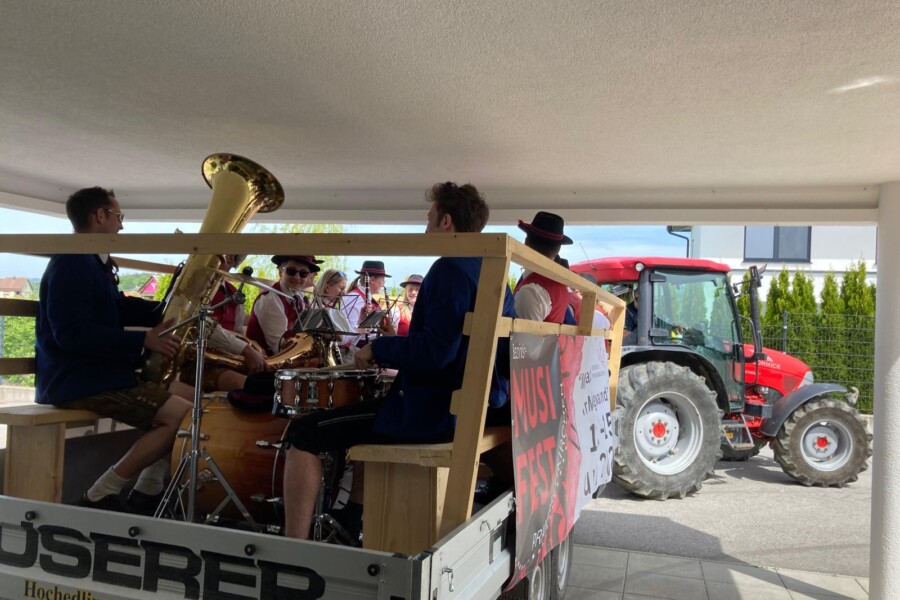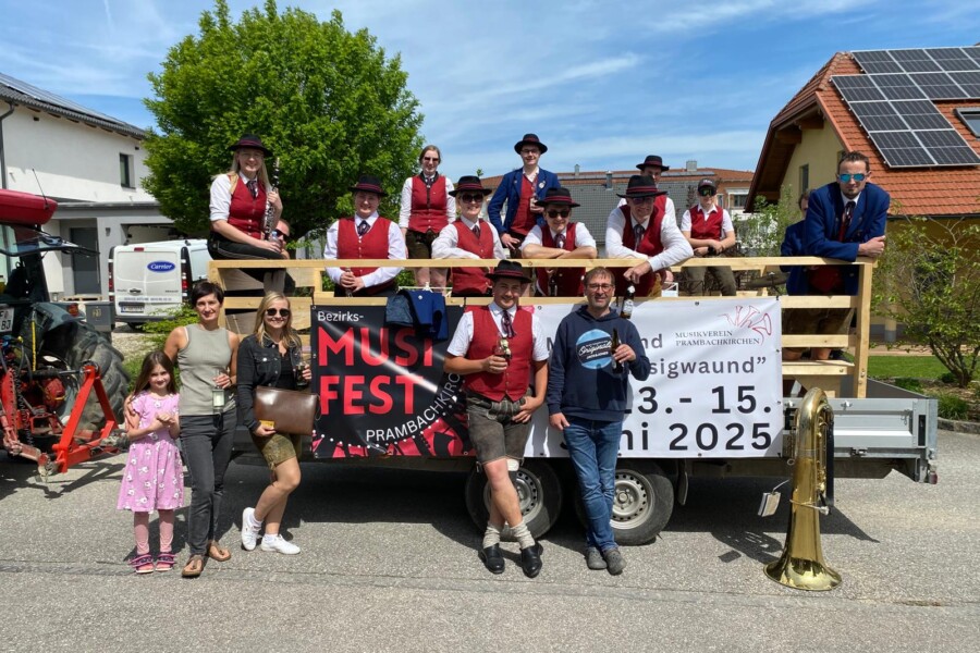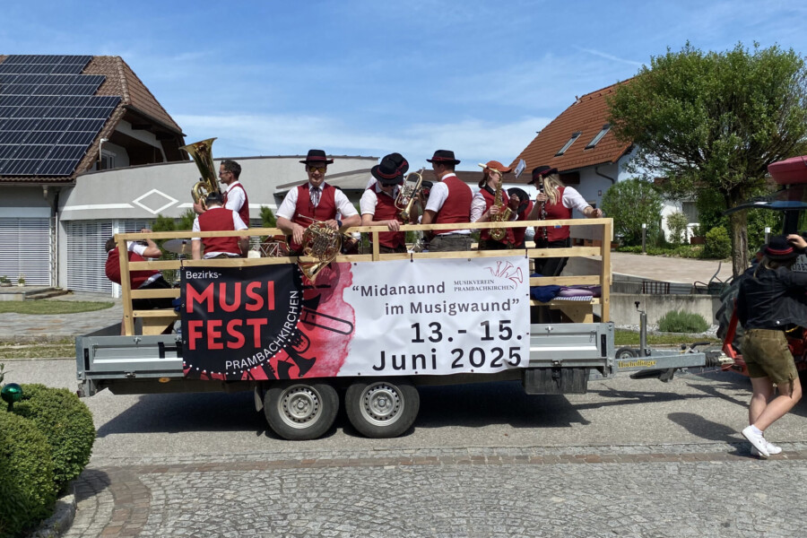 … und sich alles um die Musi dreht. Traditionell starteten wir auch diesen Mai mit viel Musik. Aufgeteilt auf zwei Wägen machten wir uns auf in das Musi-Highlight des Jahres. Mit einem kurzen Marsch vor jeder Tür durften wir alle Prambachkirchner/innen musikalisch in den Mai begrüßen. Begleitung von begeisterten Kindern, grandiose Einparkkünste unserer Traktor-Fahrer Julian und Patrick, Limbo-Dance, selbstgemachte Bauernkrapfen und Kuchen und das ein oder andere kühle Getränk inklusive.