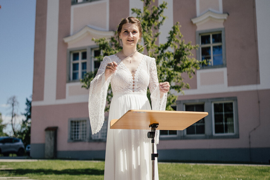 Nach der Trauung führte ein beeindruckender Hochzeitszug, bestehend aus vier Musikkapellen, das Brautpaar und die Gäste zur Agape. Nach dem Hochzeitszug folgte gleich der Festakt, den die beiden frisch Vermählten, mit vollster Freude, dirigierten.