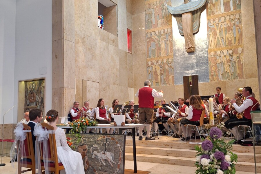 Am 18.05.2024 gaben sich unser Kapellmeister Florian und seine Simone in einer wunderschönen kirchlichen Trauung, in der Dachsbergkapelle, das Ja-Wort. Die musikalische Umrahmung der Zeremonie durften unter anderem wir mitgestalten, das war uns eine große Ehre.